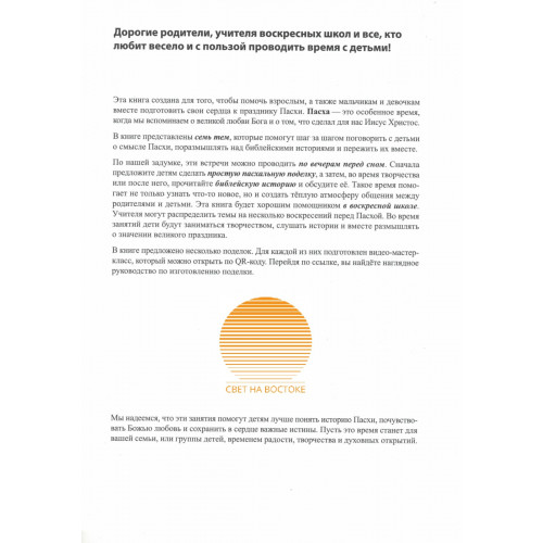 Яркий мир Пасхи в одной книжке большого формата ! Весёлые игры, милые раскраски, простые поделки и добрые истории — всё, чтобы ребёнок почувствовал значимость праздника в семейном кругу.