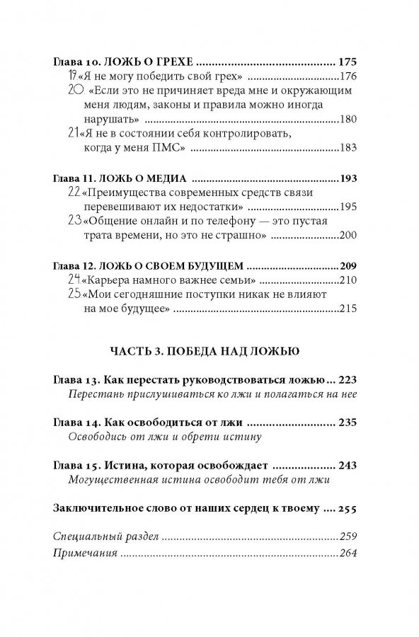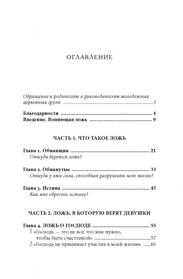 В этой книге Нэнси и Дана говорят о 25 наиболее распространенных среди представительниц молодого поколения заблуждениях. Они рассказывают правдивые истории из жизни девушек, которые приняли участие в масштабном социологическом опросе, а также о том, как им самим удавалось справиться с ложью, в которую они верили.