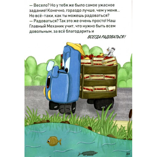 Добрая книжка-картинка, повествующая о двух грузовичках и том, какие чудесные изменения в сердце может произвести Бог. Один грузовичок всегда радуется, даже если ему предстоит далеко не приятное задание. А второй во всем находит повод для недовольства. Красочные иллюстрации автора привлекут внимание маленьких читателей.